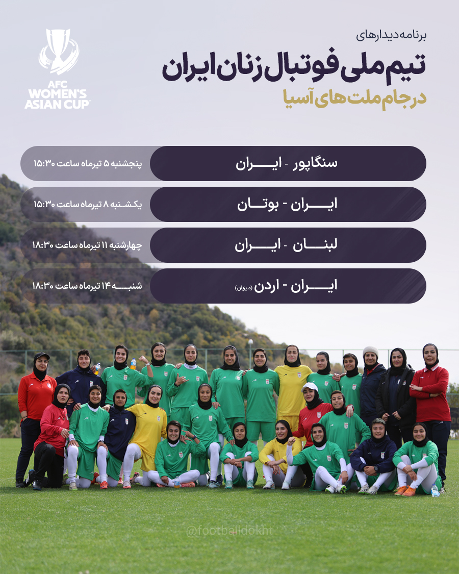 برنامه زمانبندی رقابتهای تیم ملی فوتبال زنان کشورمان به شرح زیر است: