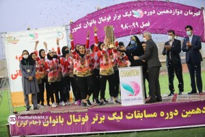 شاگردان مرضیه جعفری هفتمین قهرمانی خود در لیگ فوتبال زنان ایران را با حضور مدیران فدراسیون فوتبال و اعضای هیات فوتبال استان کرمان در ورزشگاه باهنر این شهر جشن گرفتند و کاپ قهرمانی دوازدهمین دوره مسابقات را بالای سر بردند. تصاویر زیر از دریچه دوربین سهیل سعادتمندی به ثبت رسیده است. تاریخچه لیگ فوتبال بانوان کوثر را از اینجا بخوانید